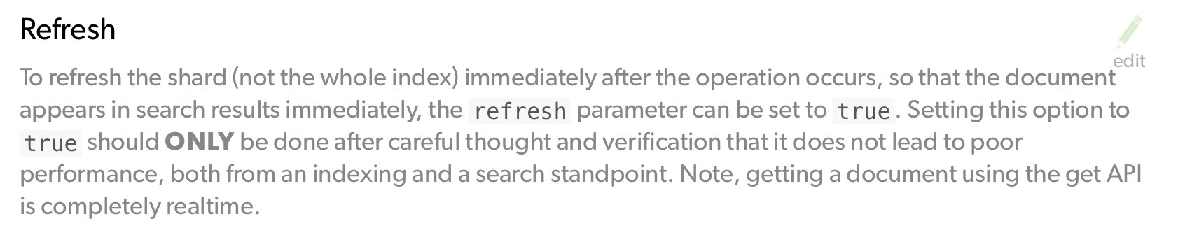 Elasticsearch Index API has Refresh option